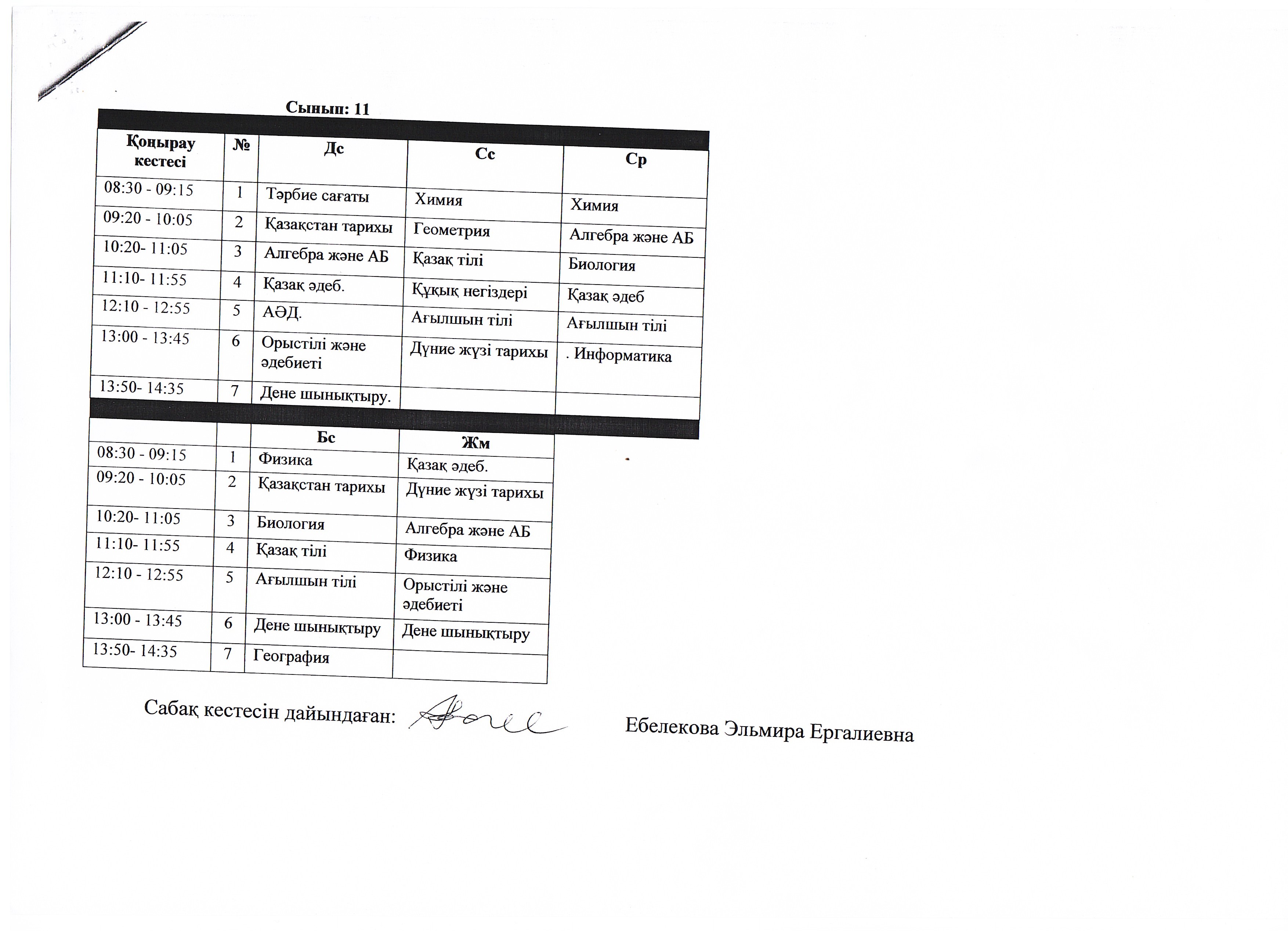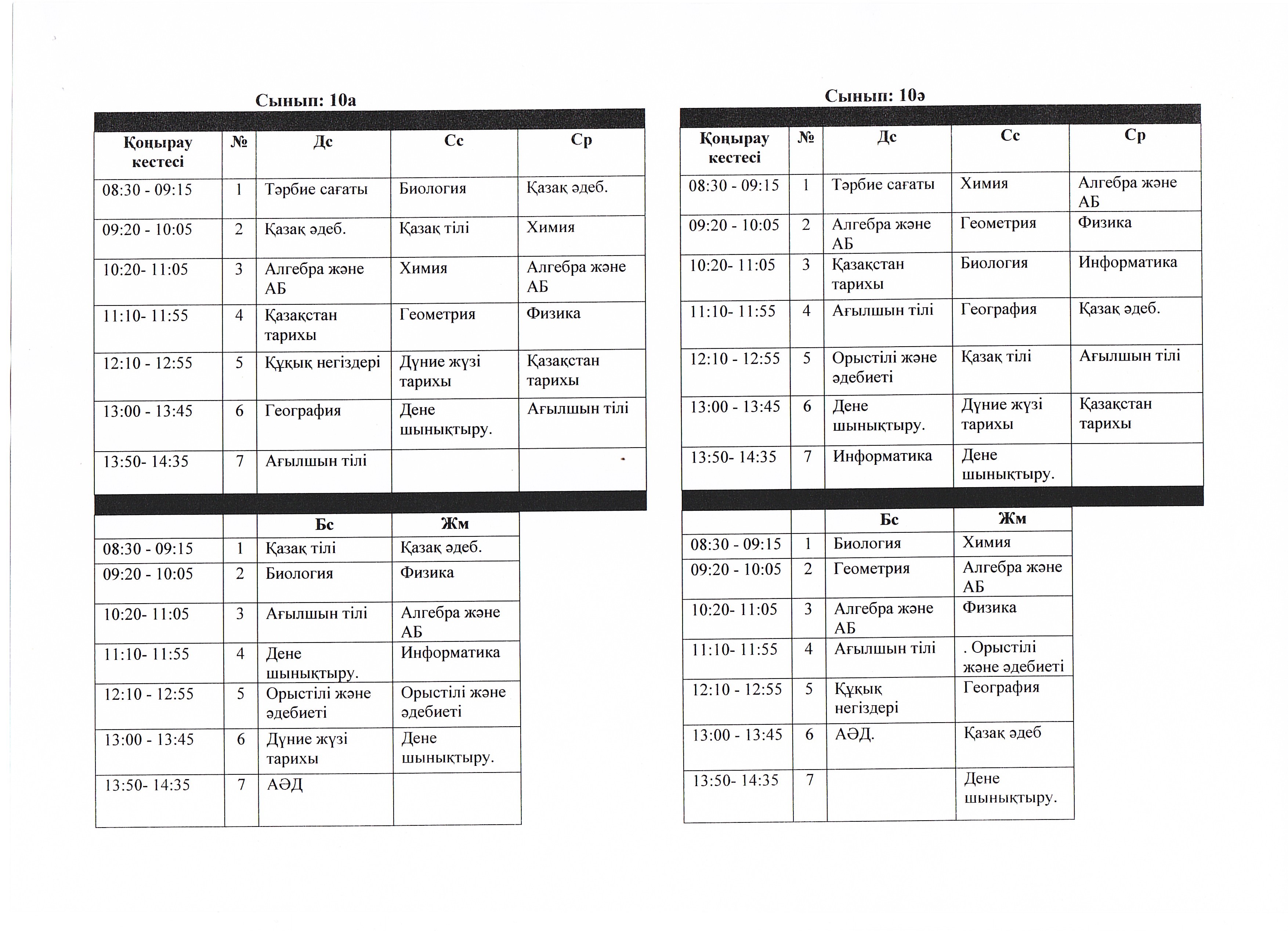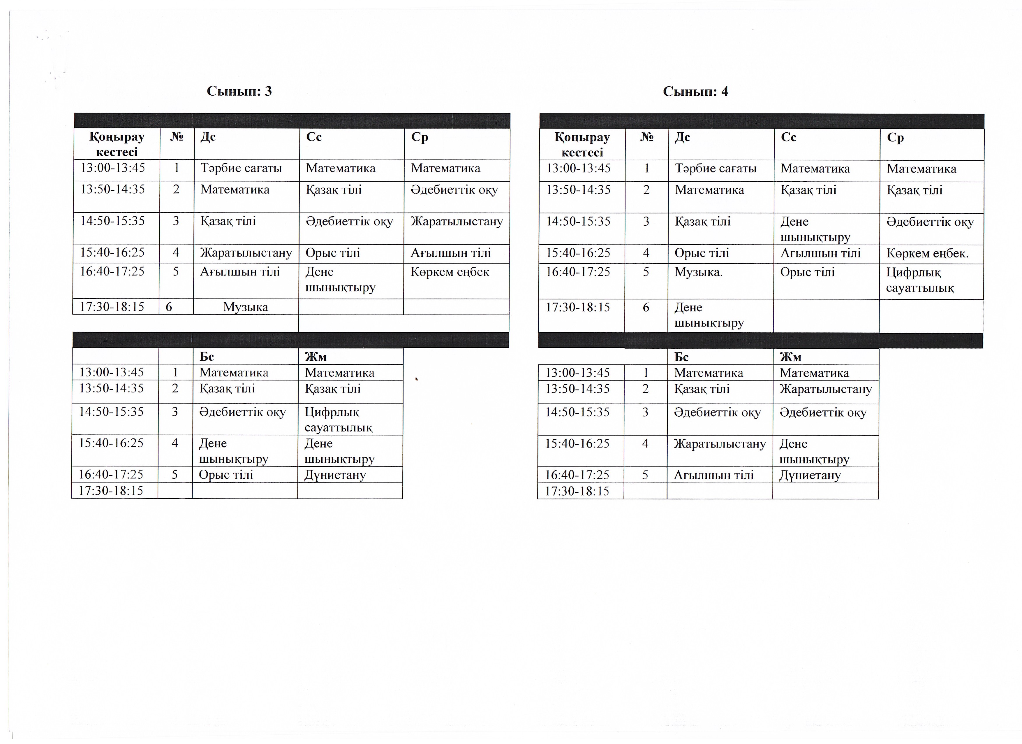 Сабақ кестесі 2023 - 2024 ж