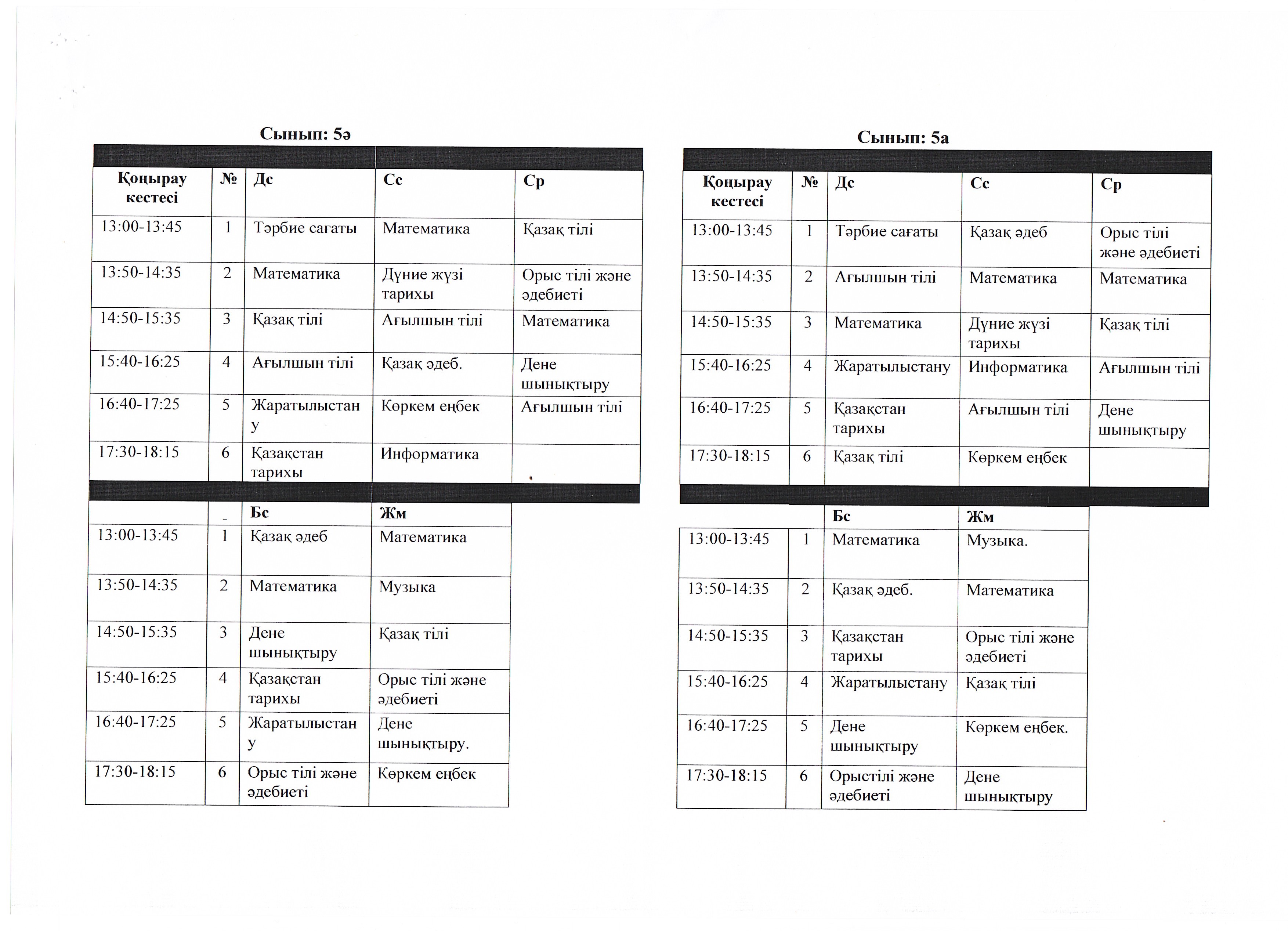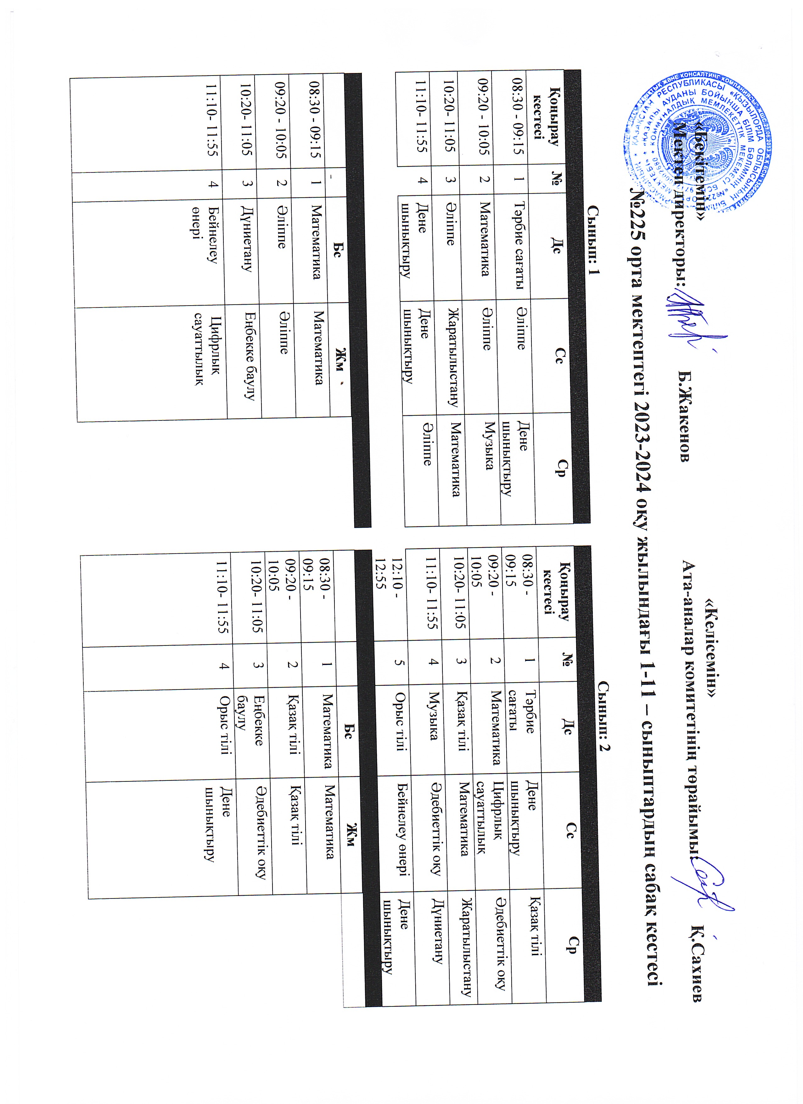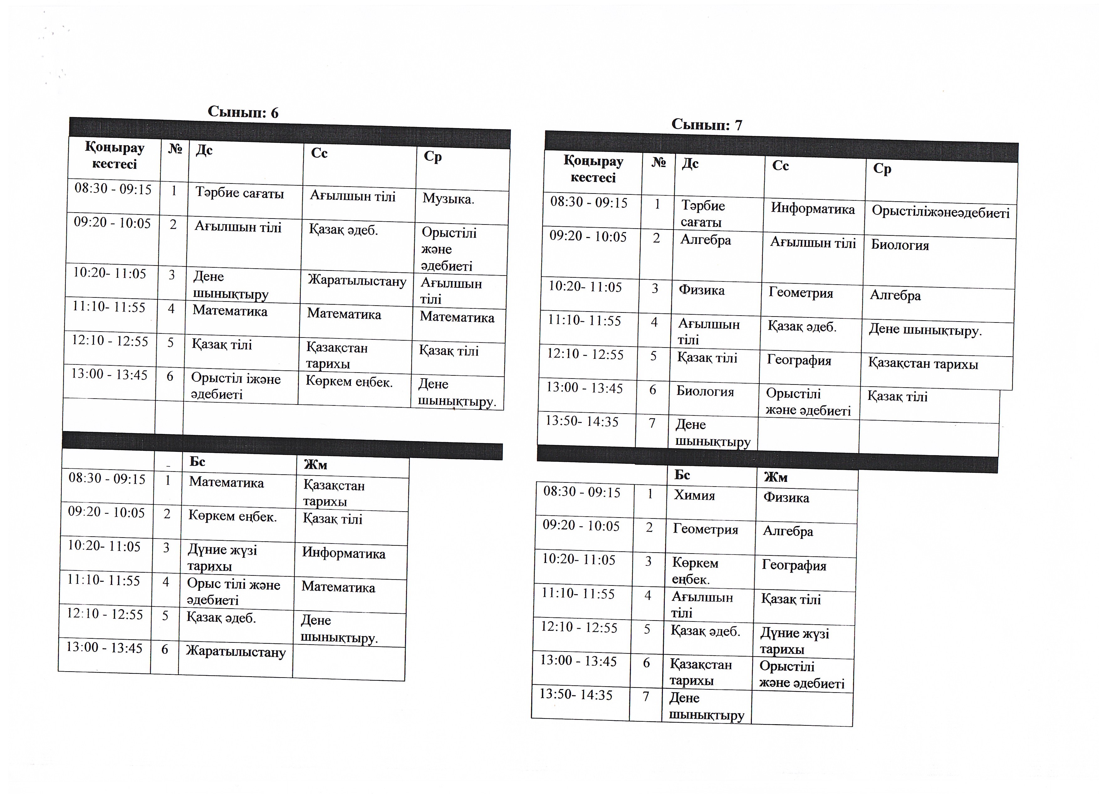 Сабақ кестесі 2023 - 2024 ж