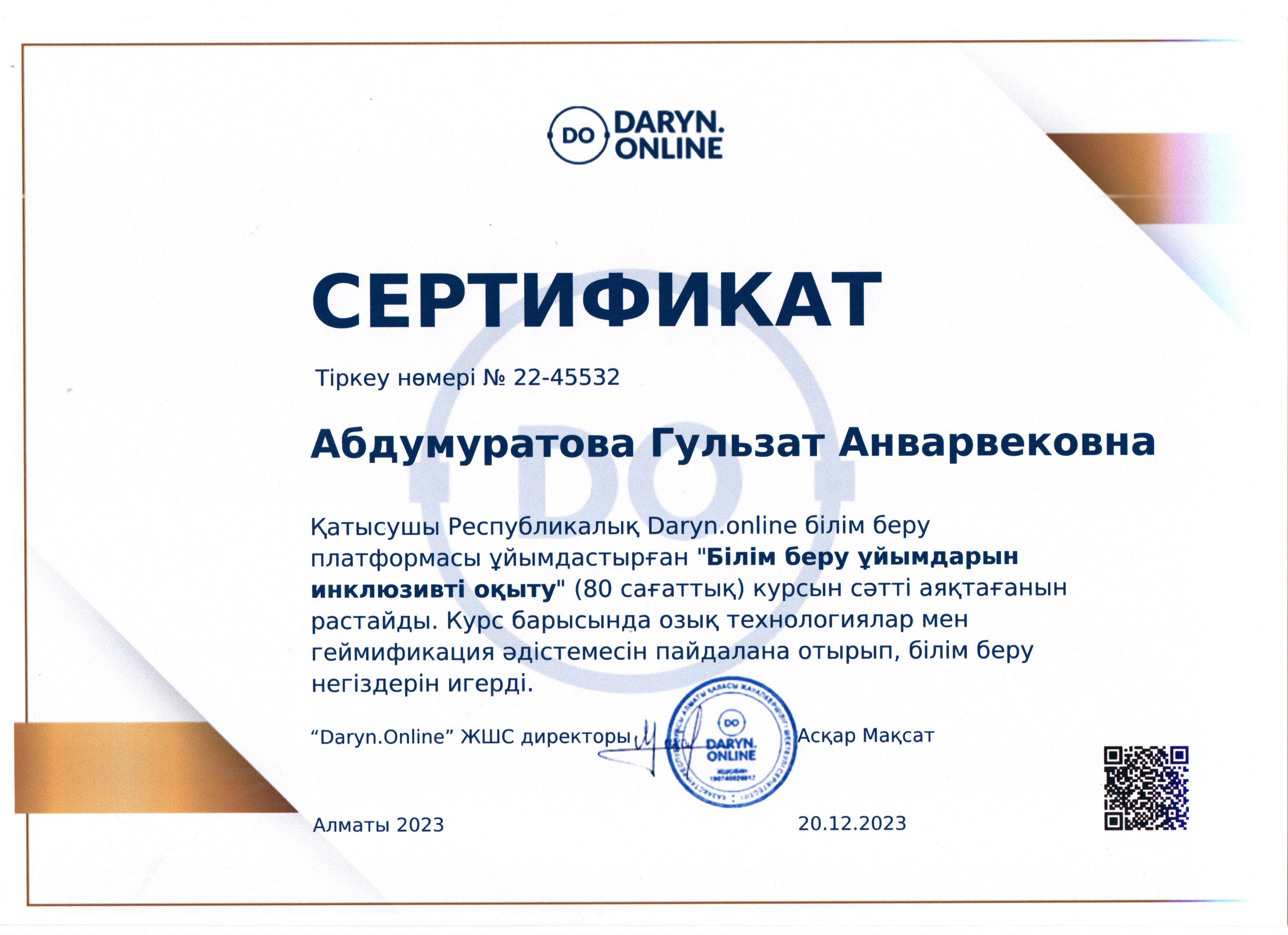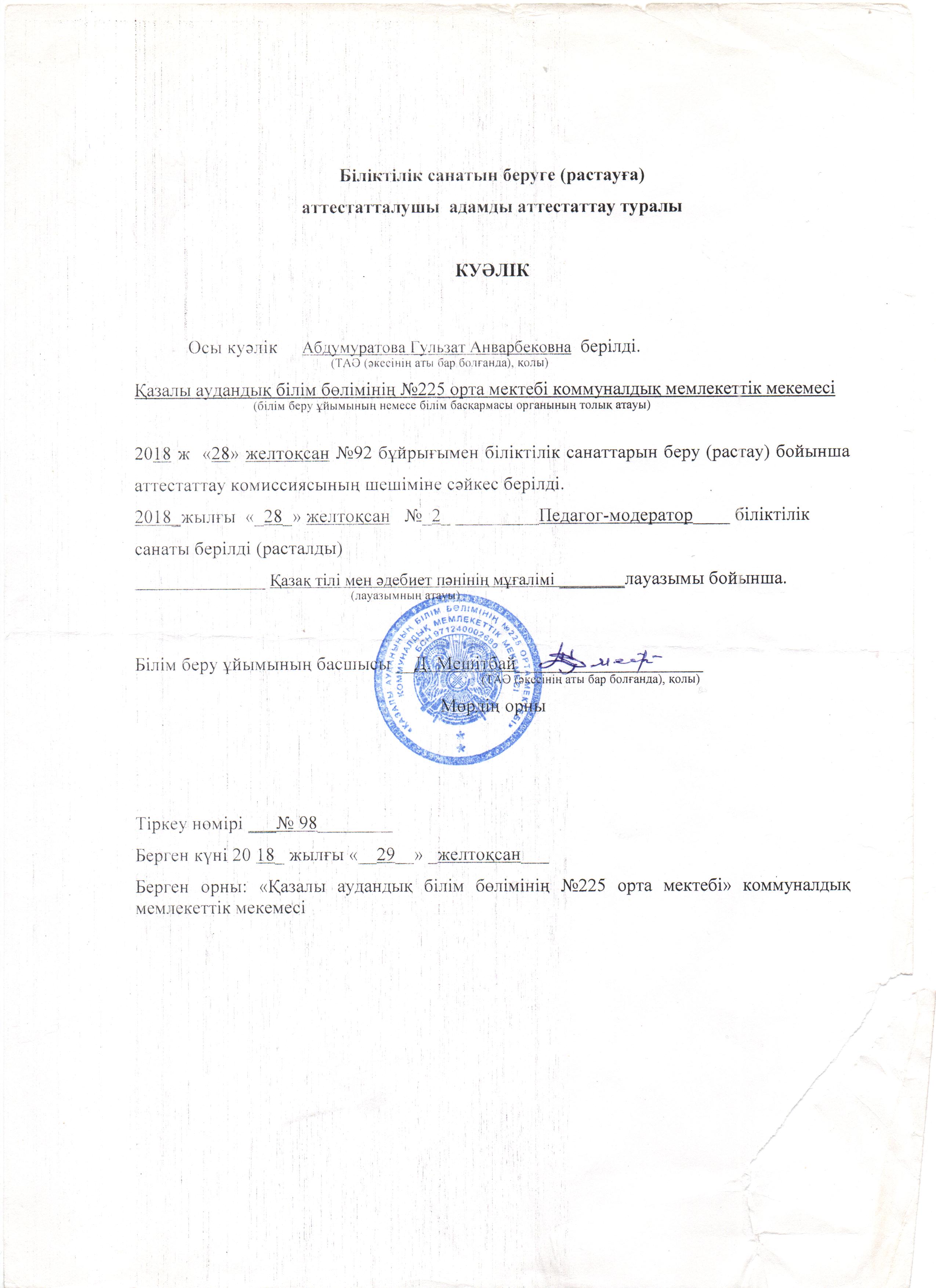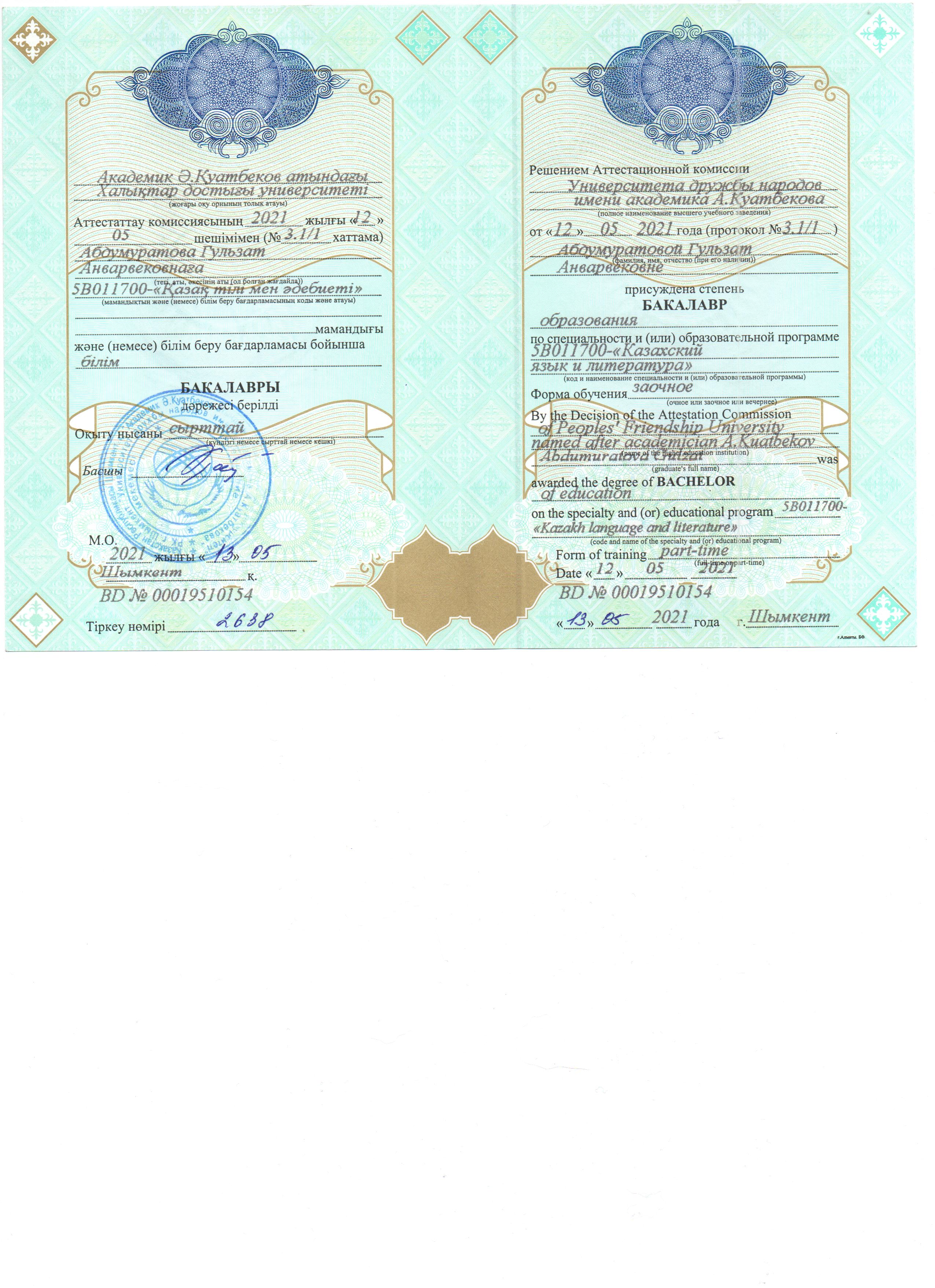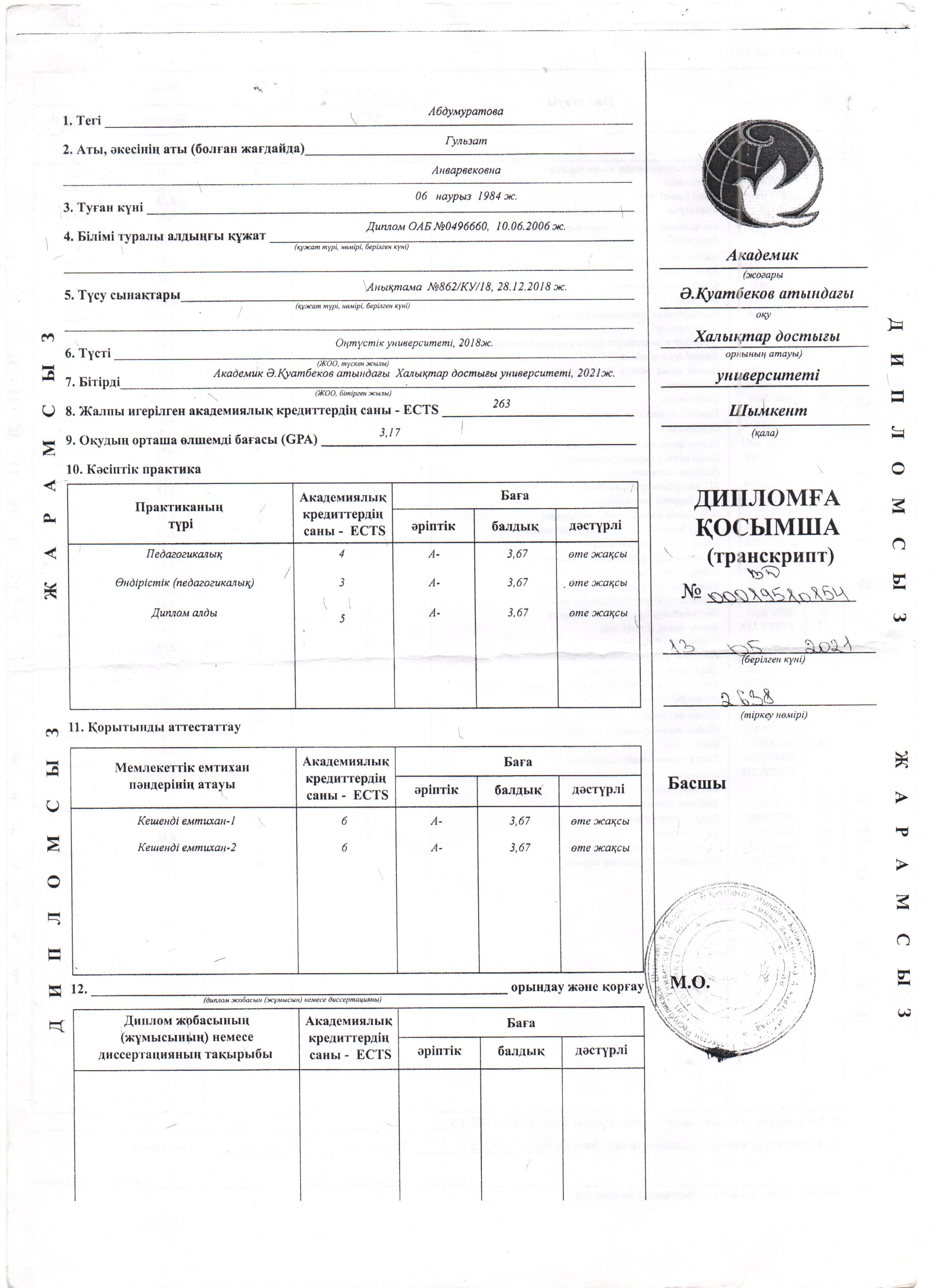 Абдумуратова Гульзат Анварбековна