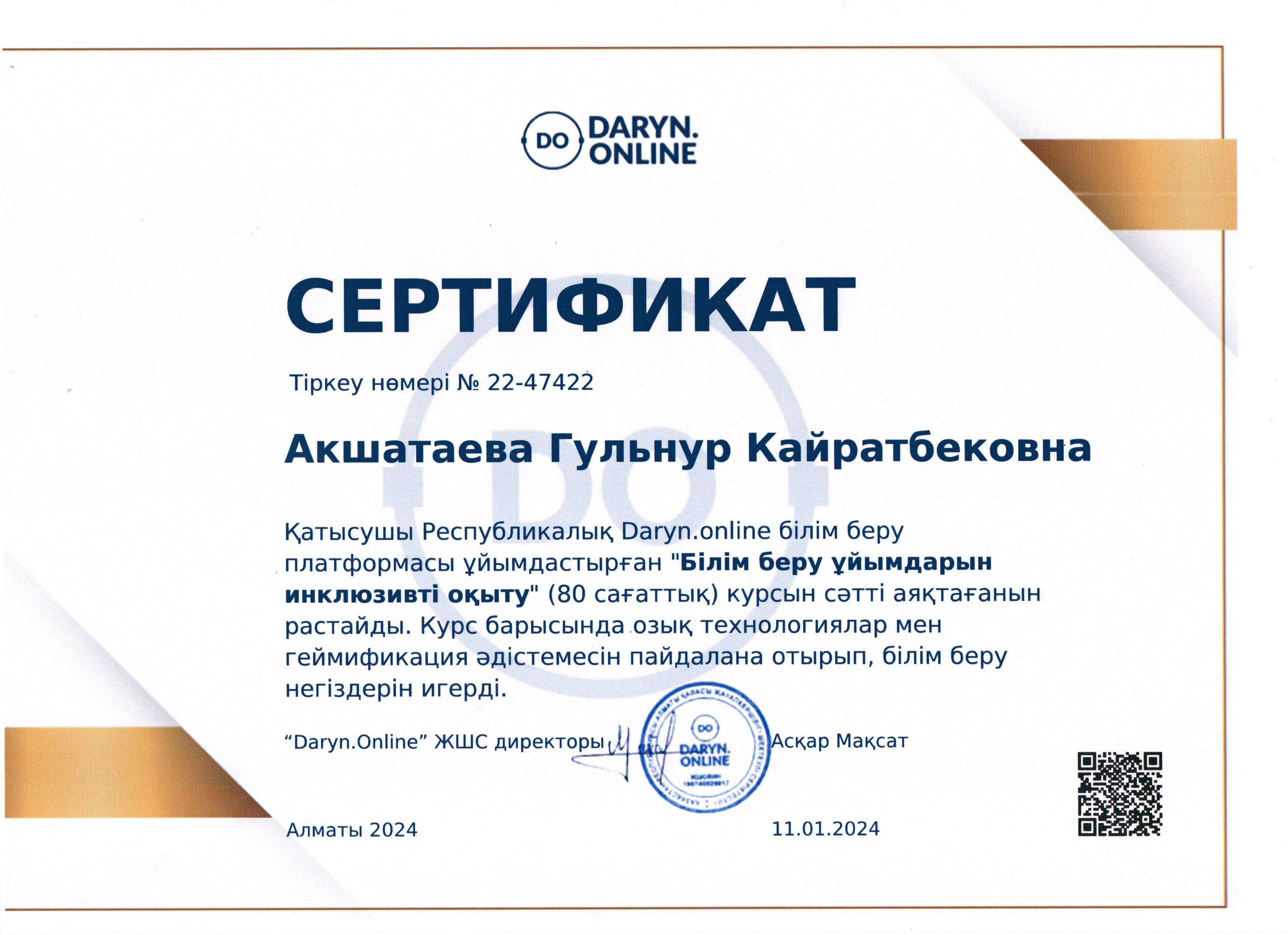 Акшатаева Гульнур Кайратбековна