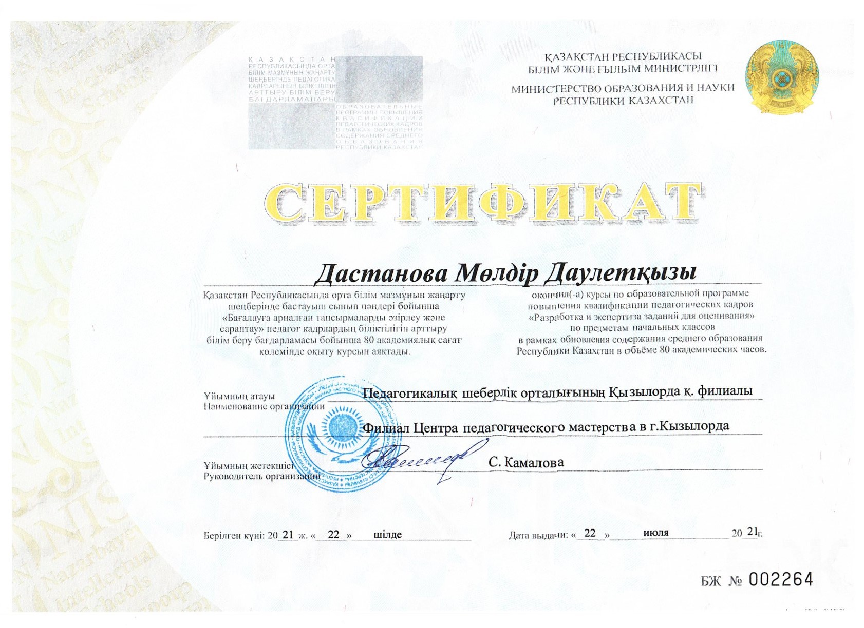 Дастанова Мөлдір Даулетқызы