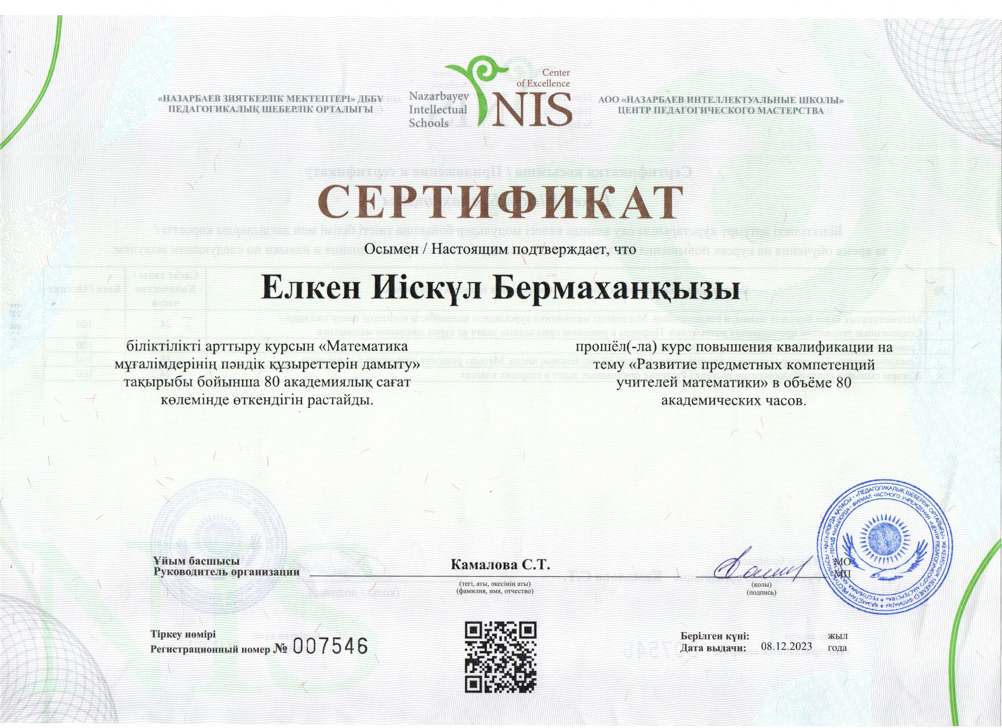 Елкен Иіскүл Бермахановна