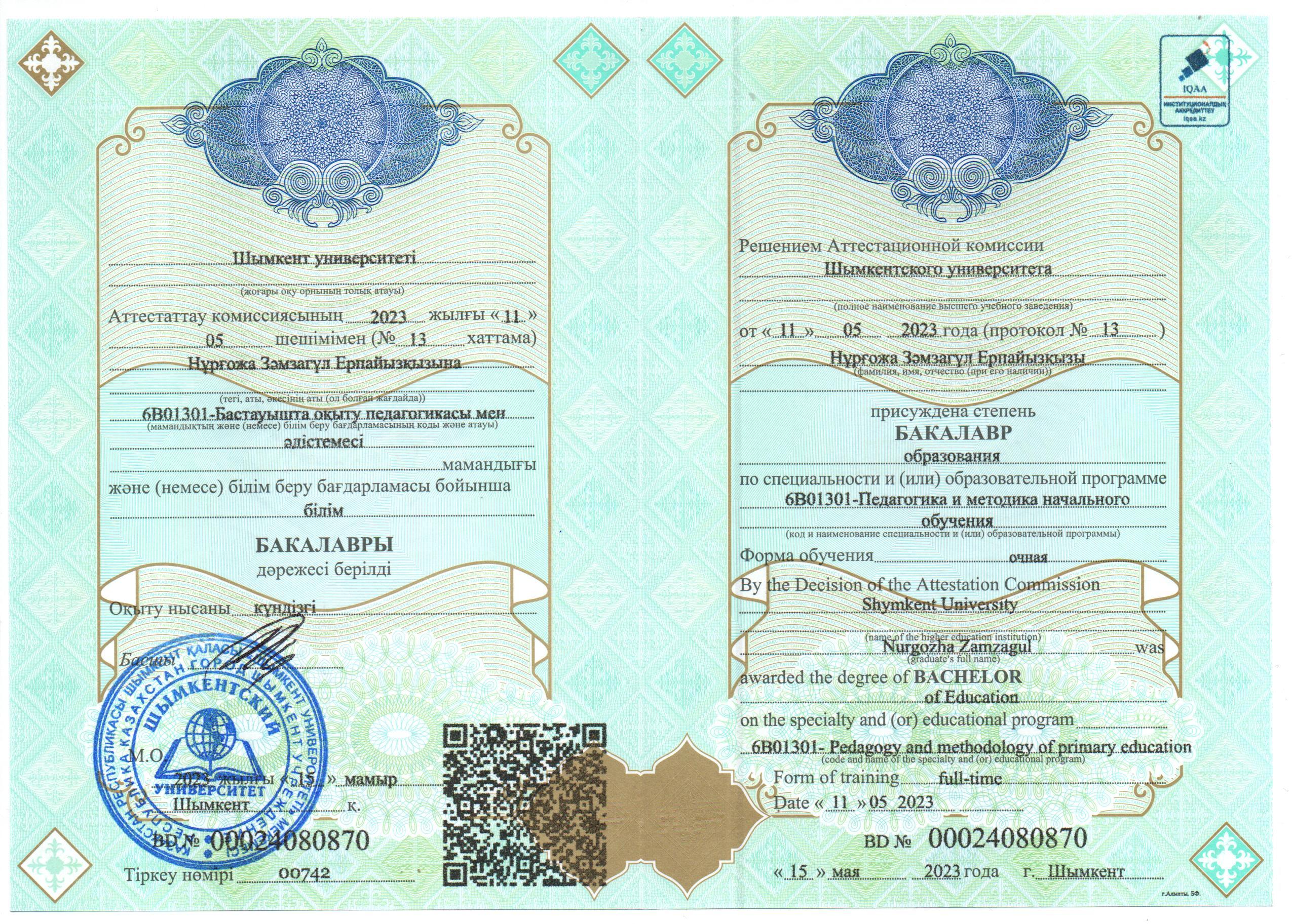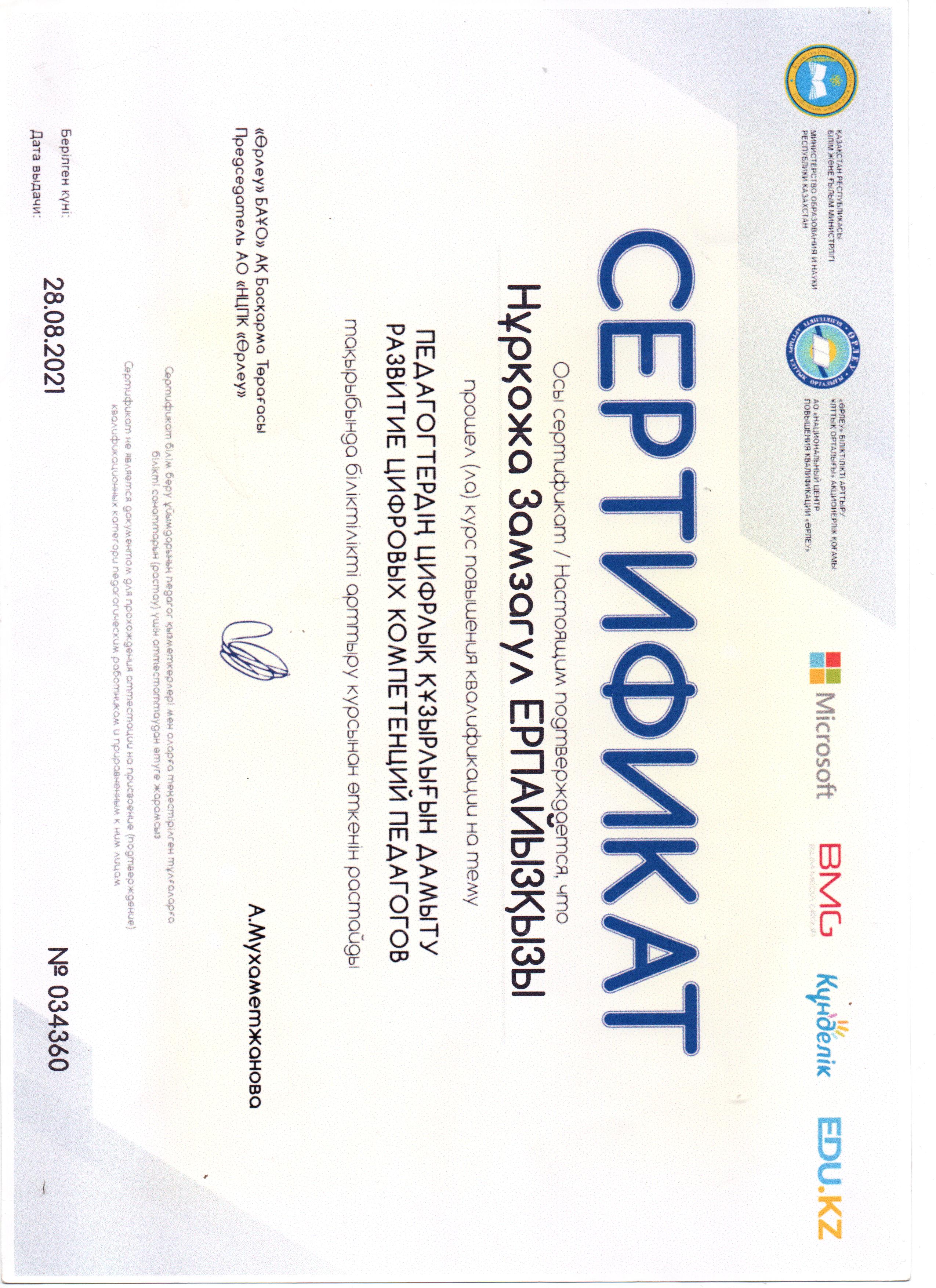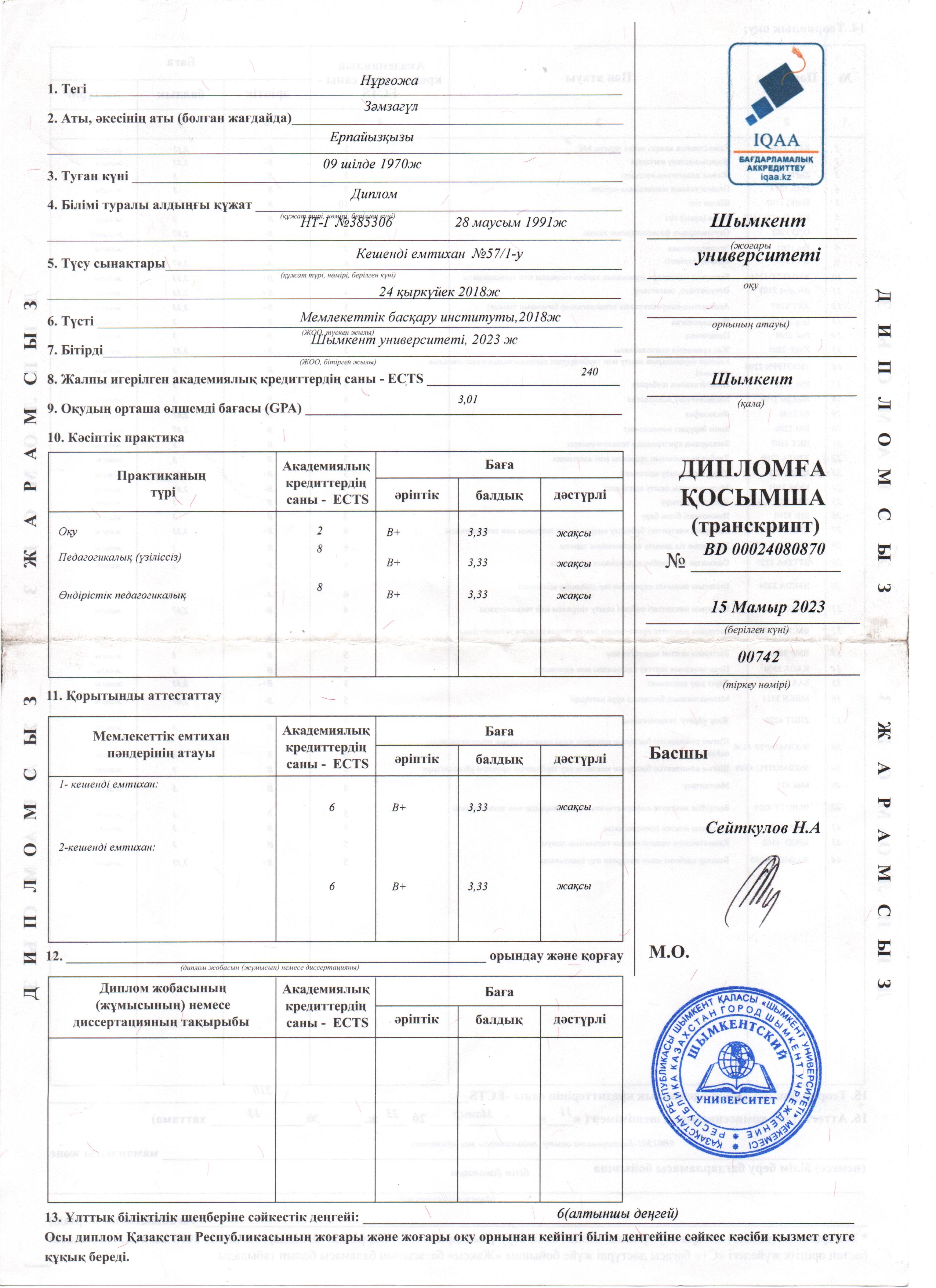Нұрқожа Зәмзагүл Ерпайызқызы
