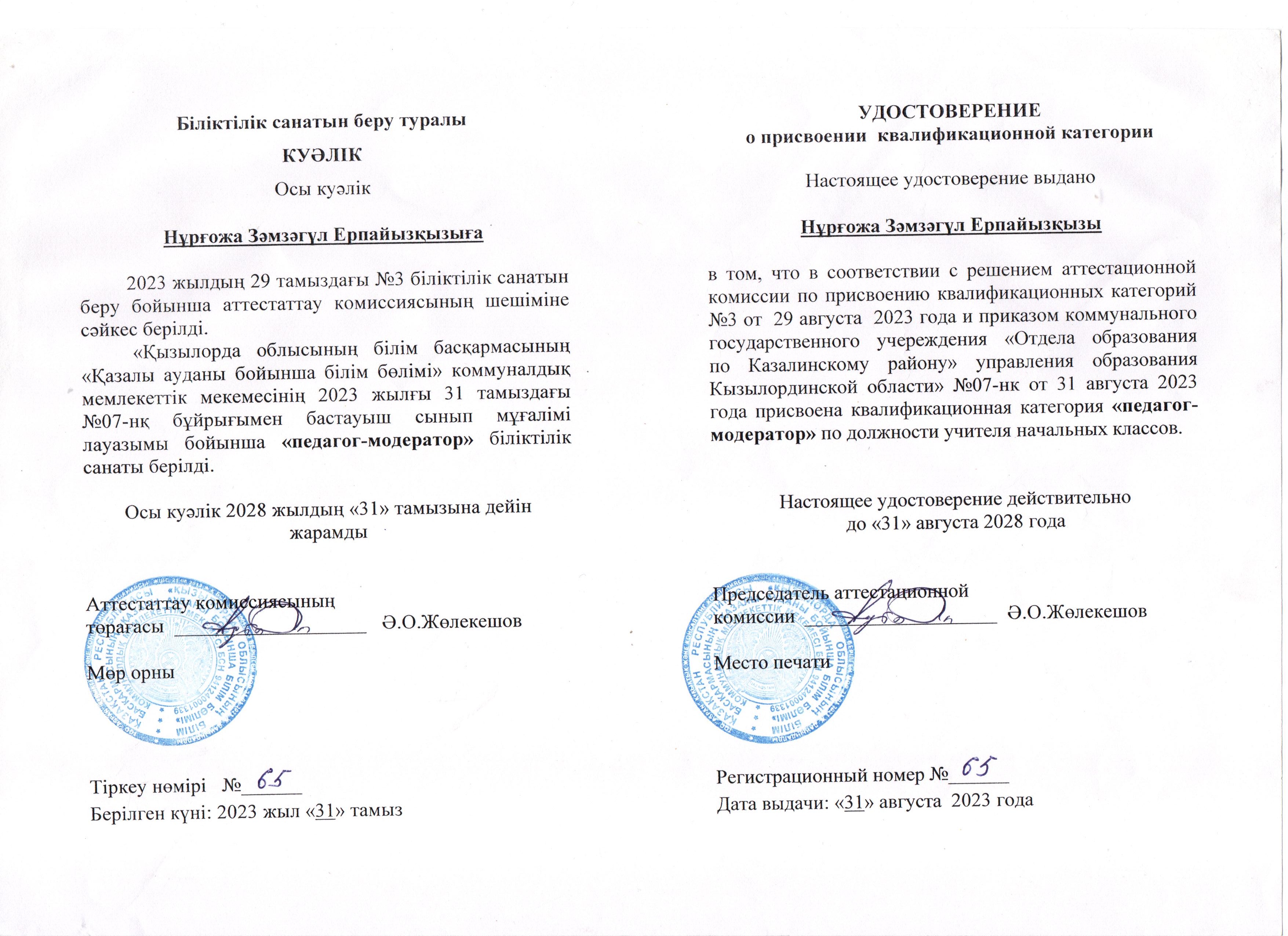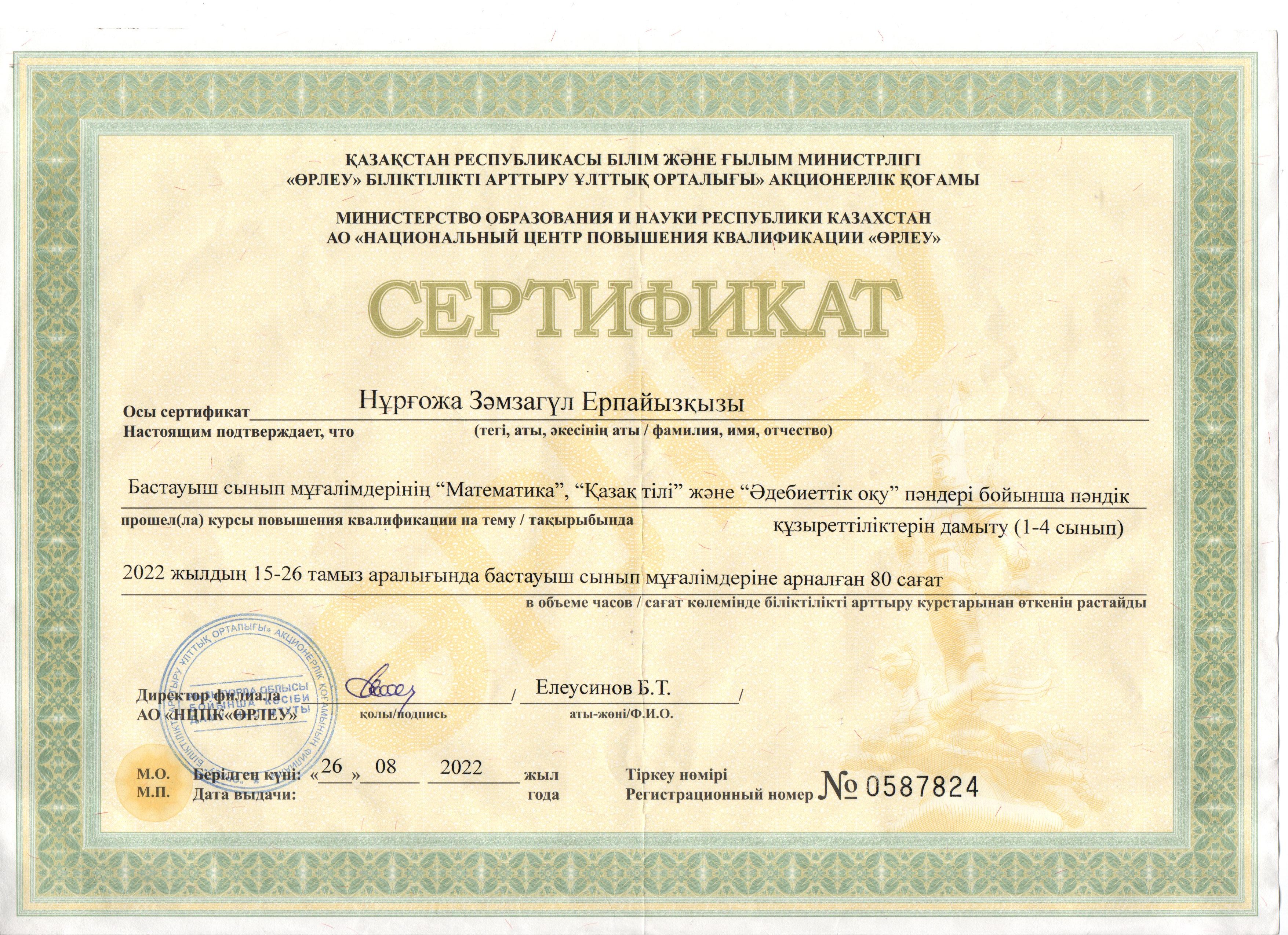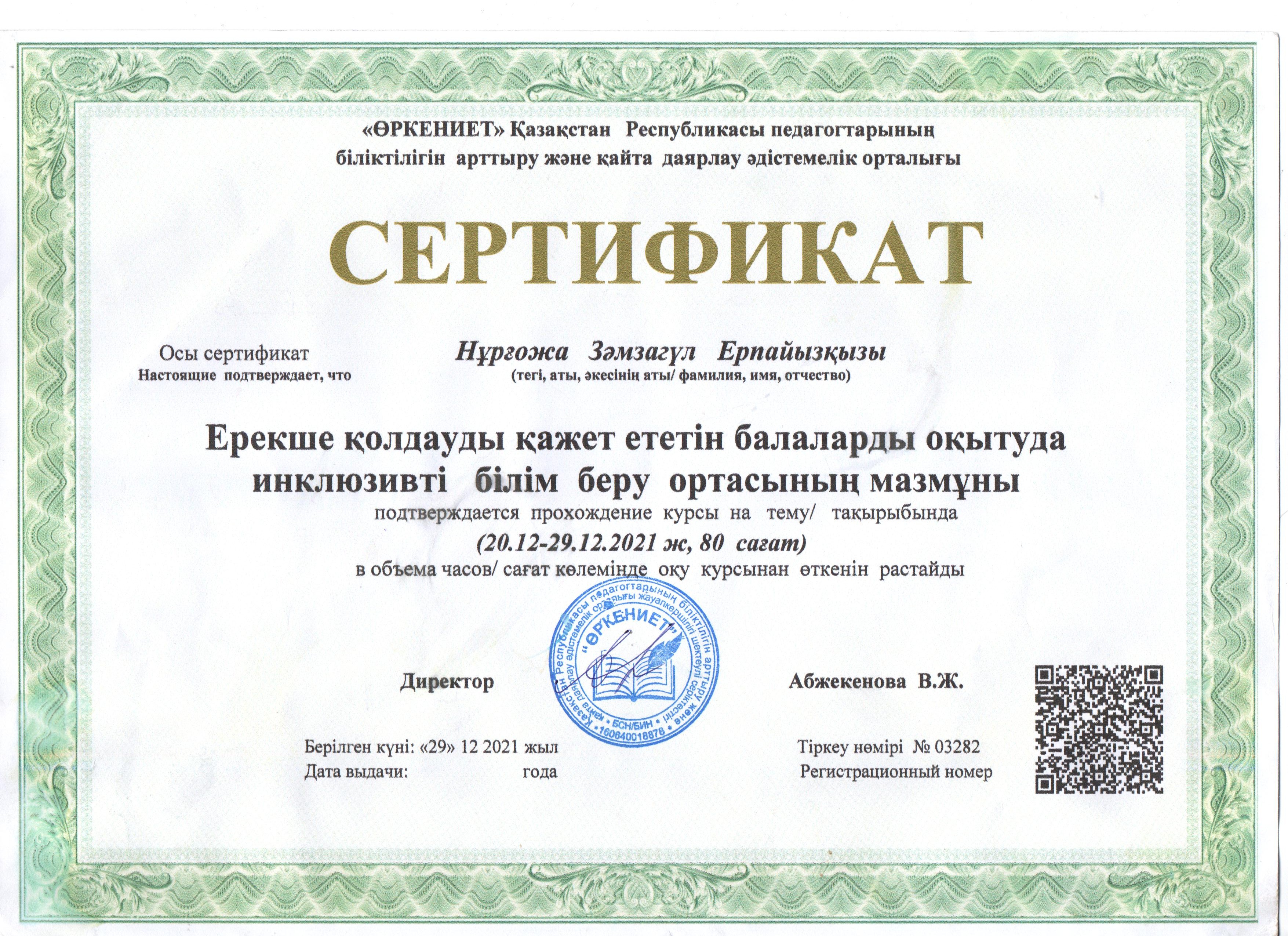 Нұрқожа Зәмзагүл Ерпайызқызы