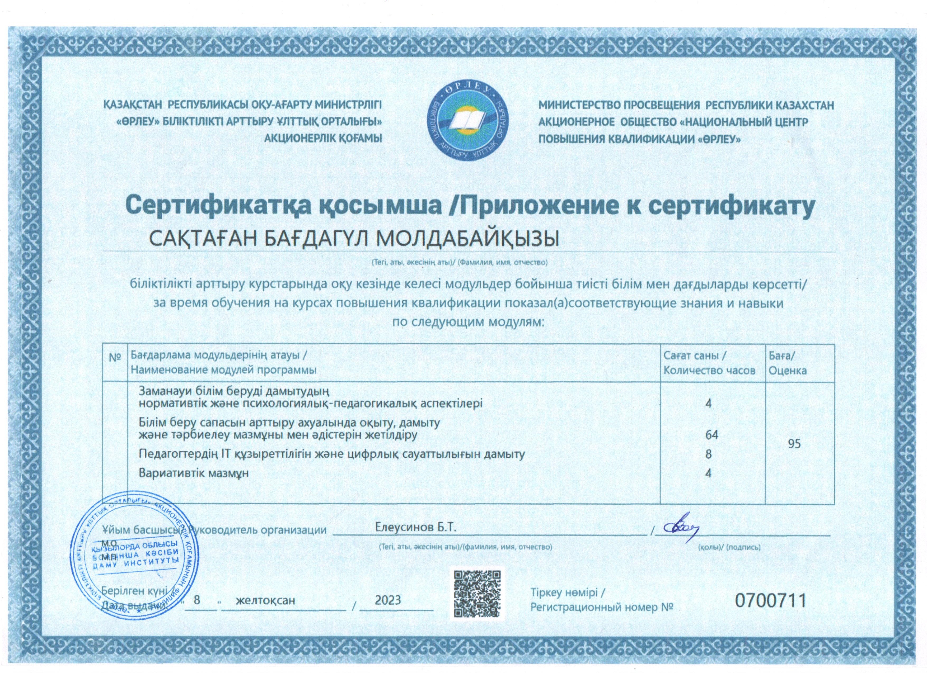 Қосымша сабақтардың әзірленген бекітілген кестесі