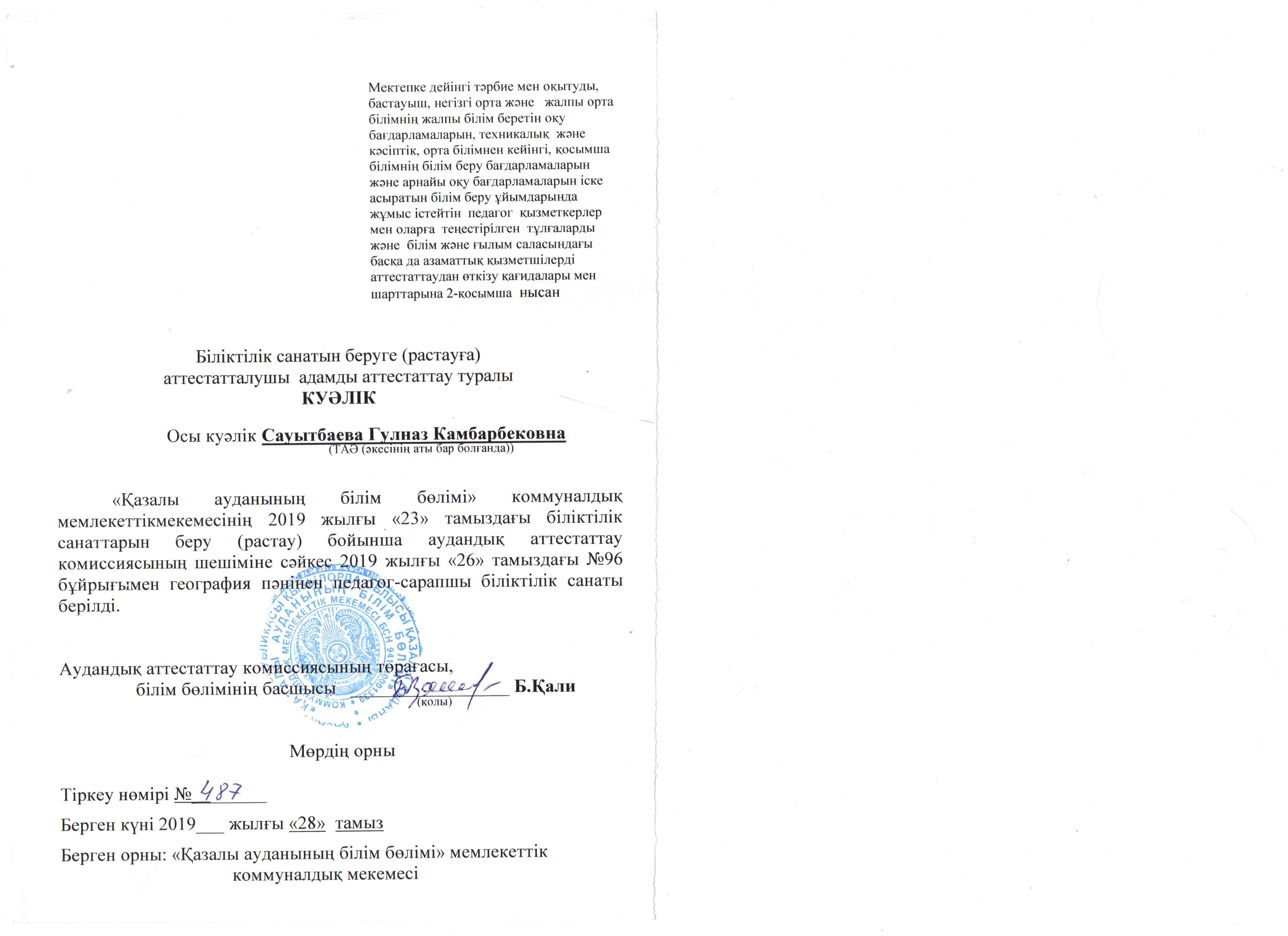 Сауытбаева Гулназ Камбарбековна