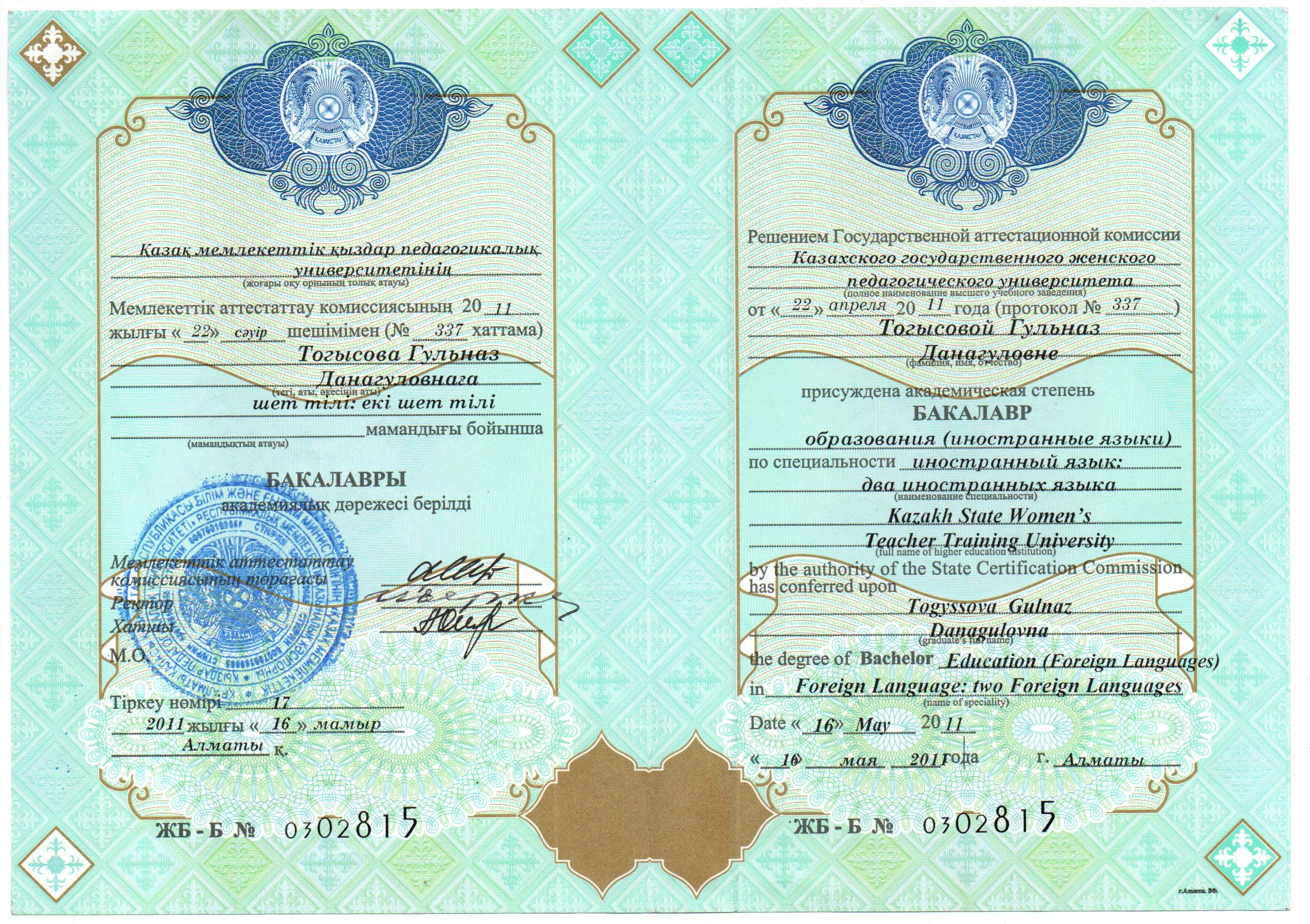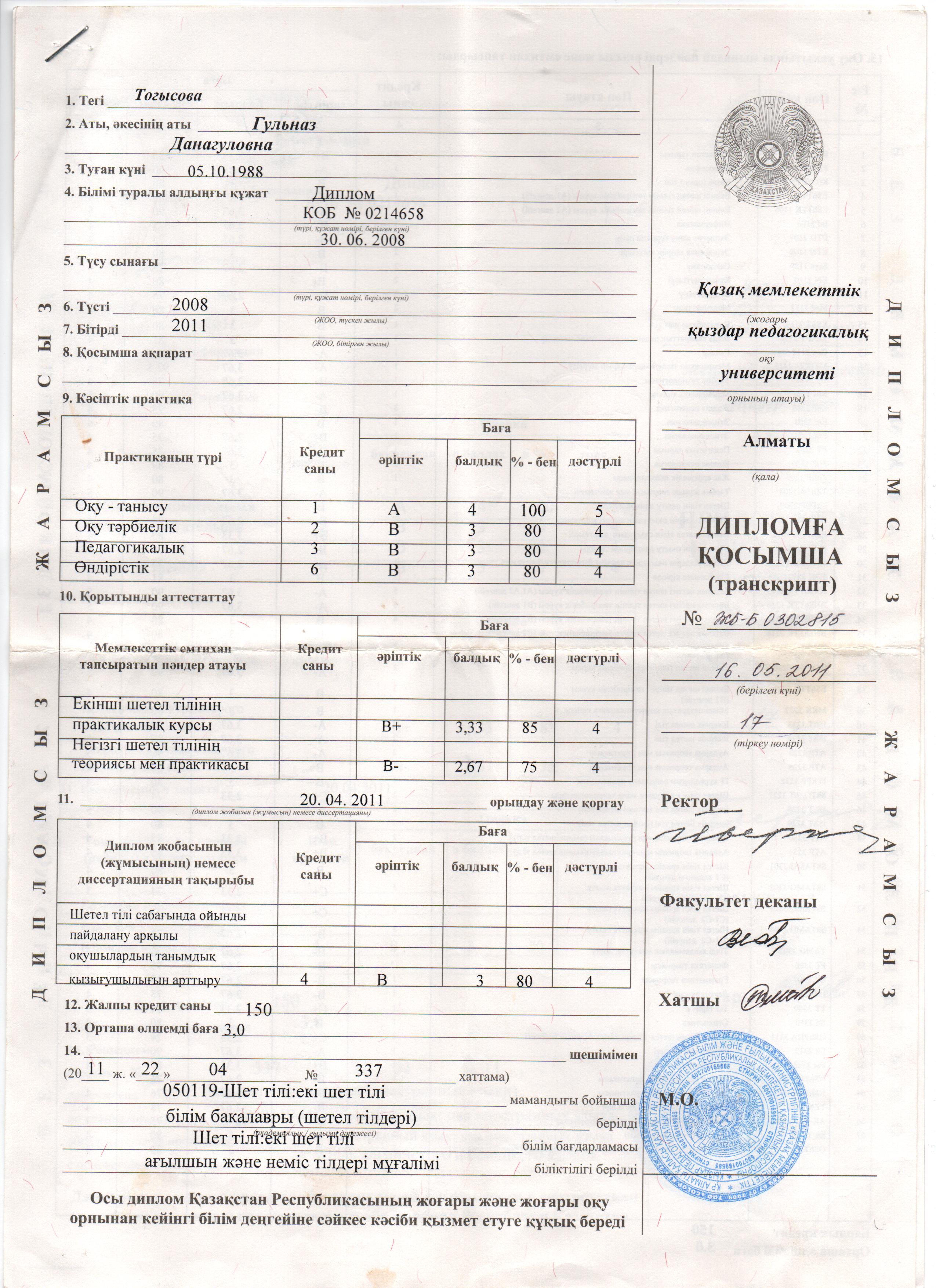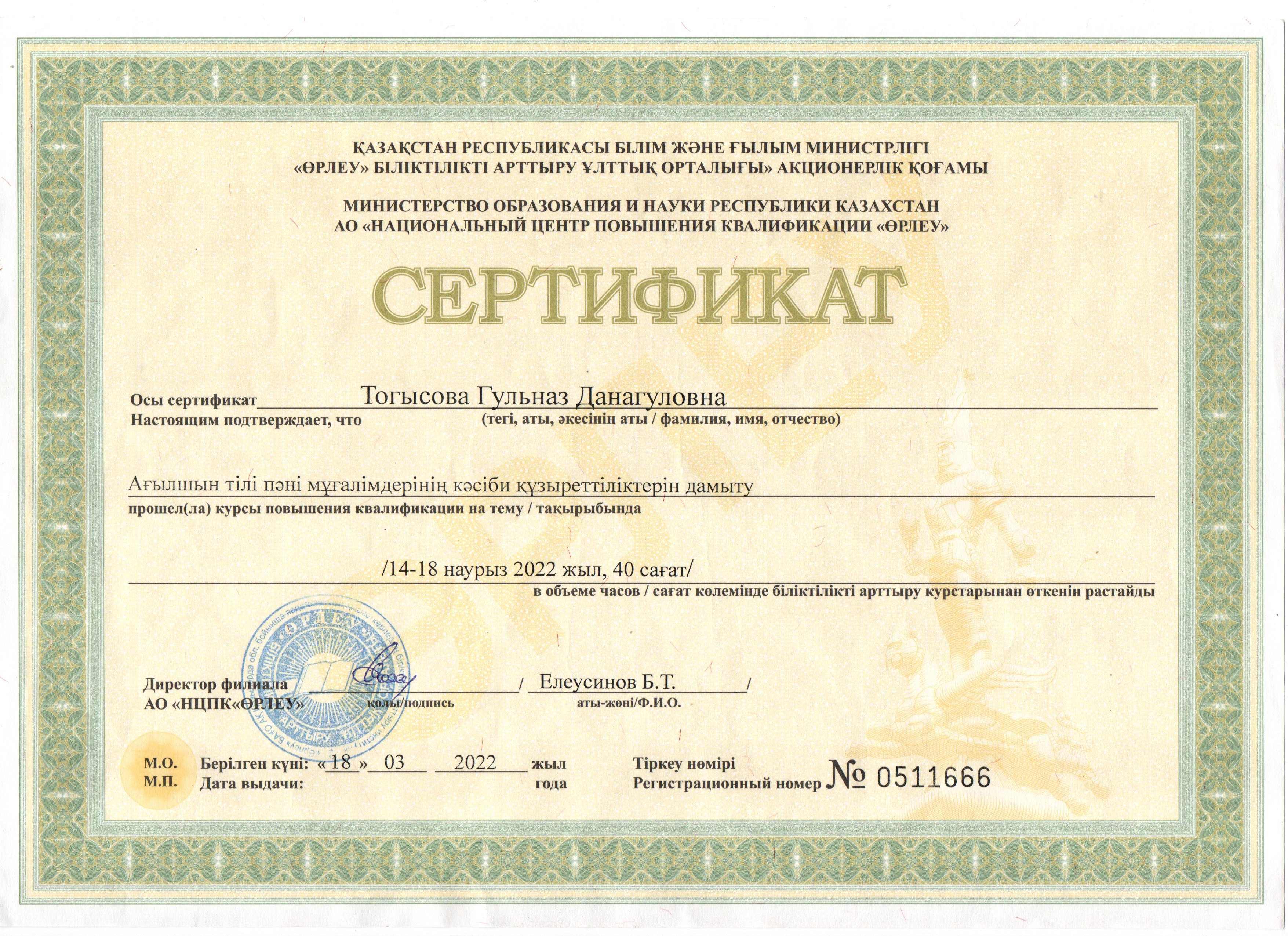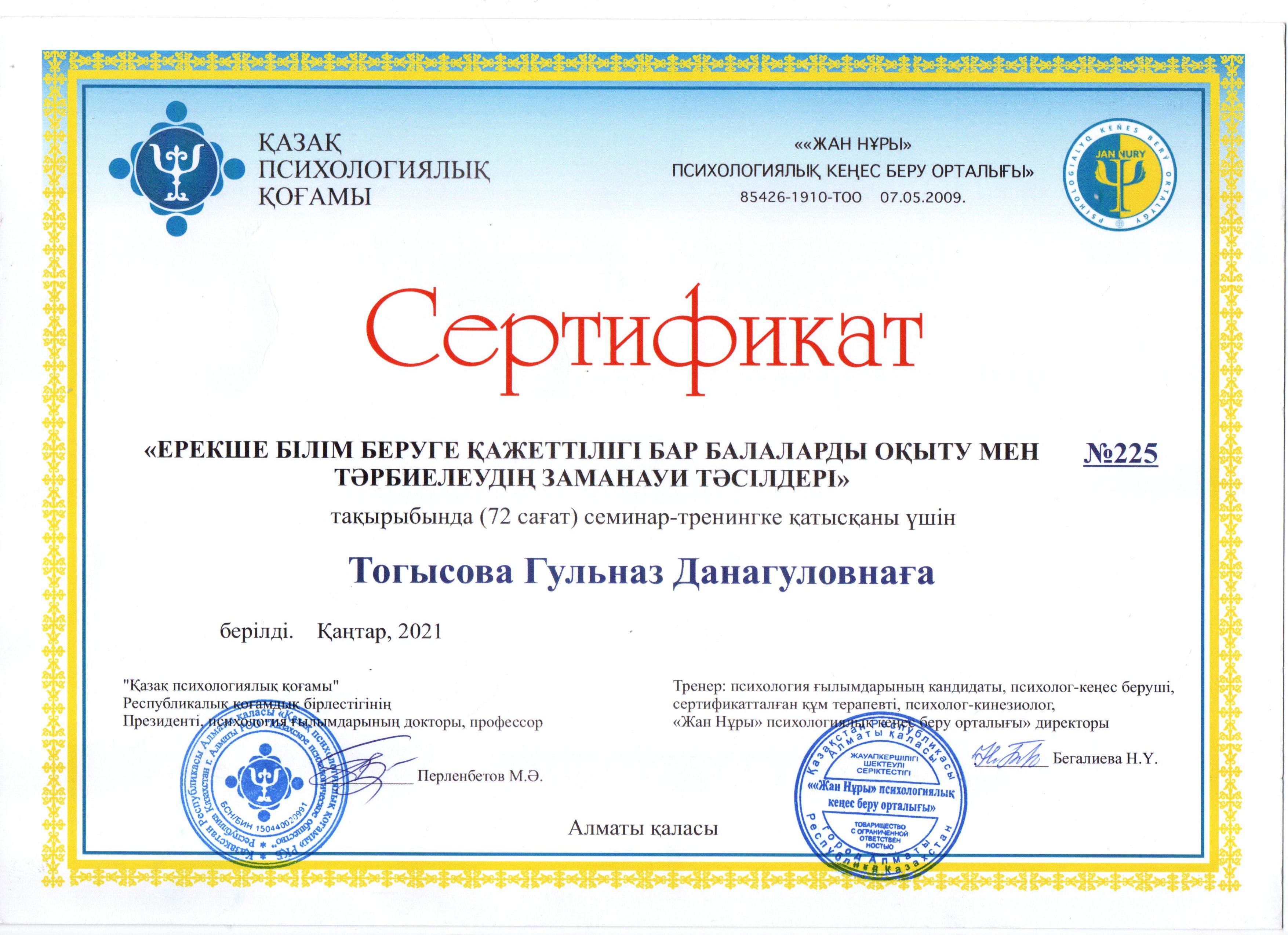 Тогысова Гульназ Данагуловна