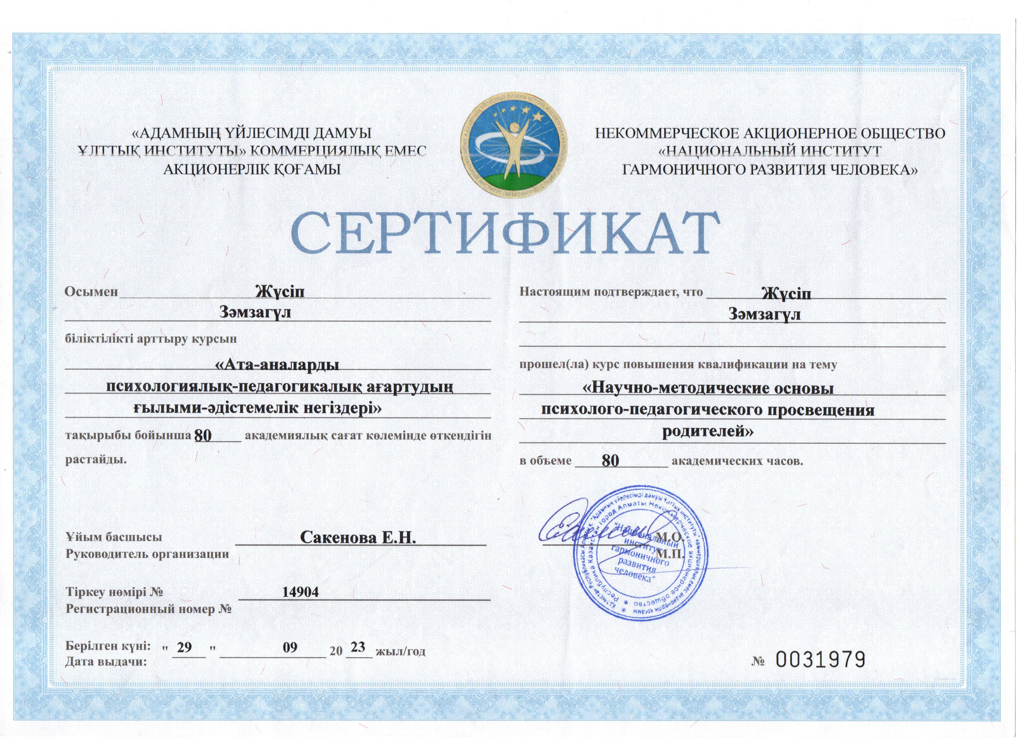 Жүсіп Зәмзагүл Бегімбетқызы